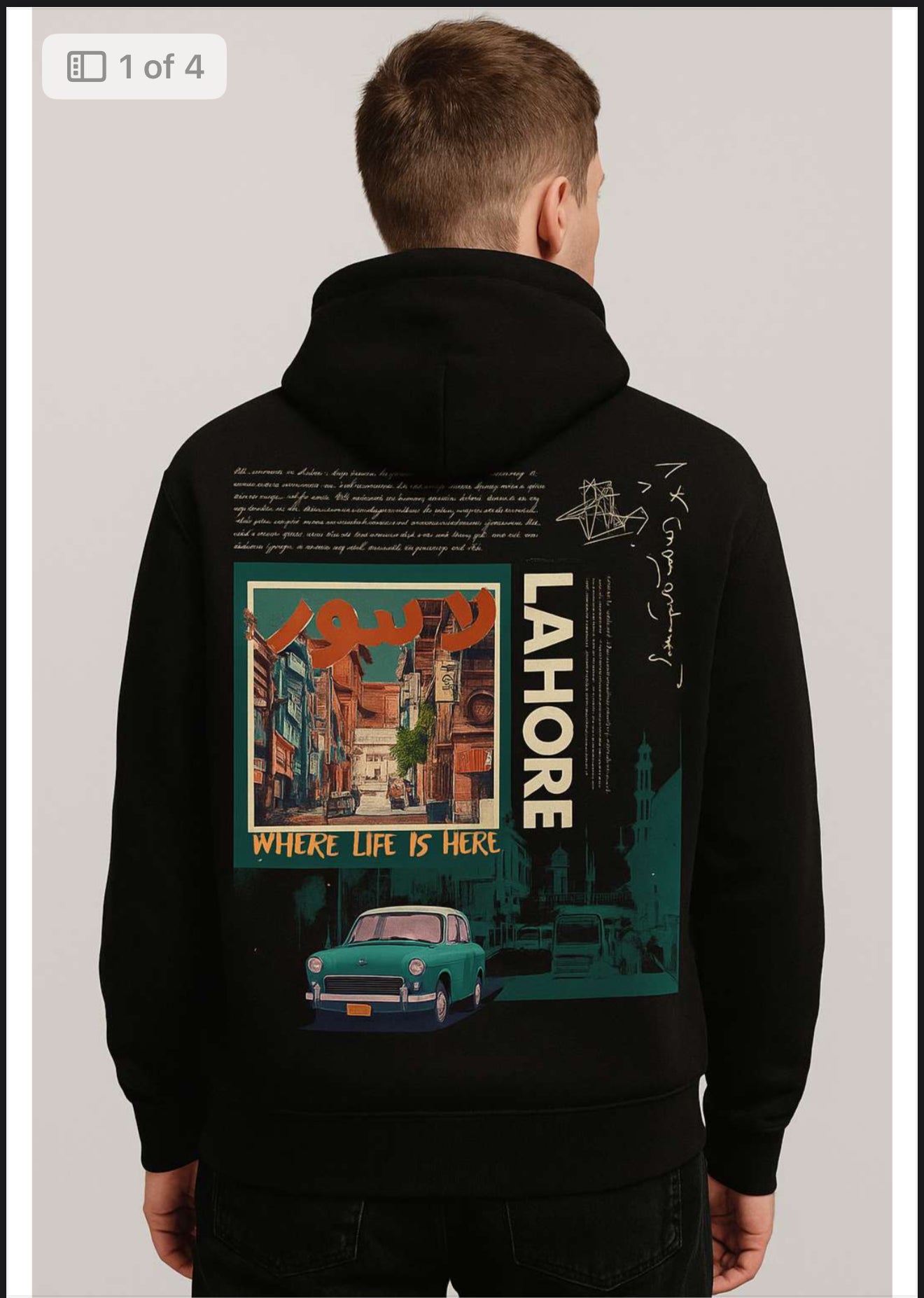 Experience the spirit of Lahore with this premium Lahore Street Art Graphic Hoodie. Designed for those who love culture, heritage, and urban fashion this hoodie features a bold illustration of Lahore’s old streets, iconic buildings, and classic car artwork.