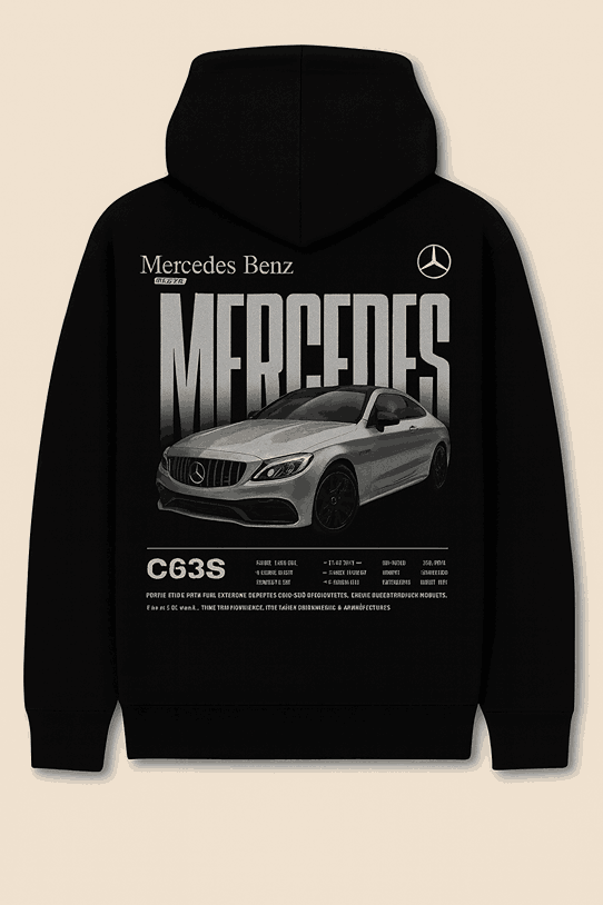 Bring the thrill of the track to your wardrobe with the Mercedes C63S Hoodie. Designed for car enthusiasts and streetwear lovers alike, this hoodie combines sleek automotive aesthetics with everyday comfort. Featuring bold “MERCEDES” lettering, a detailed C63S graphic, and performance specifications, it’s a statement piece that celebrates speed, power, and precision.