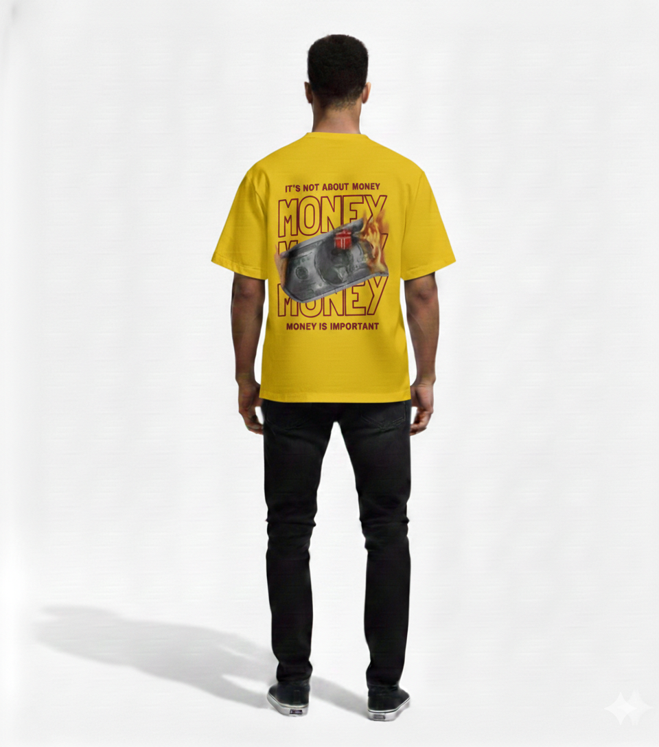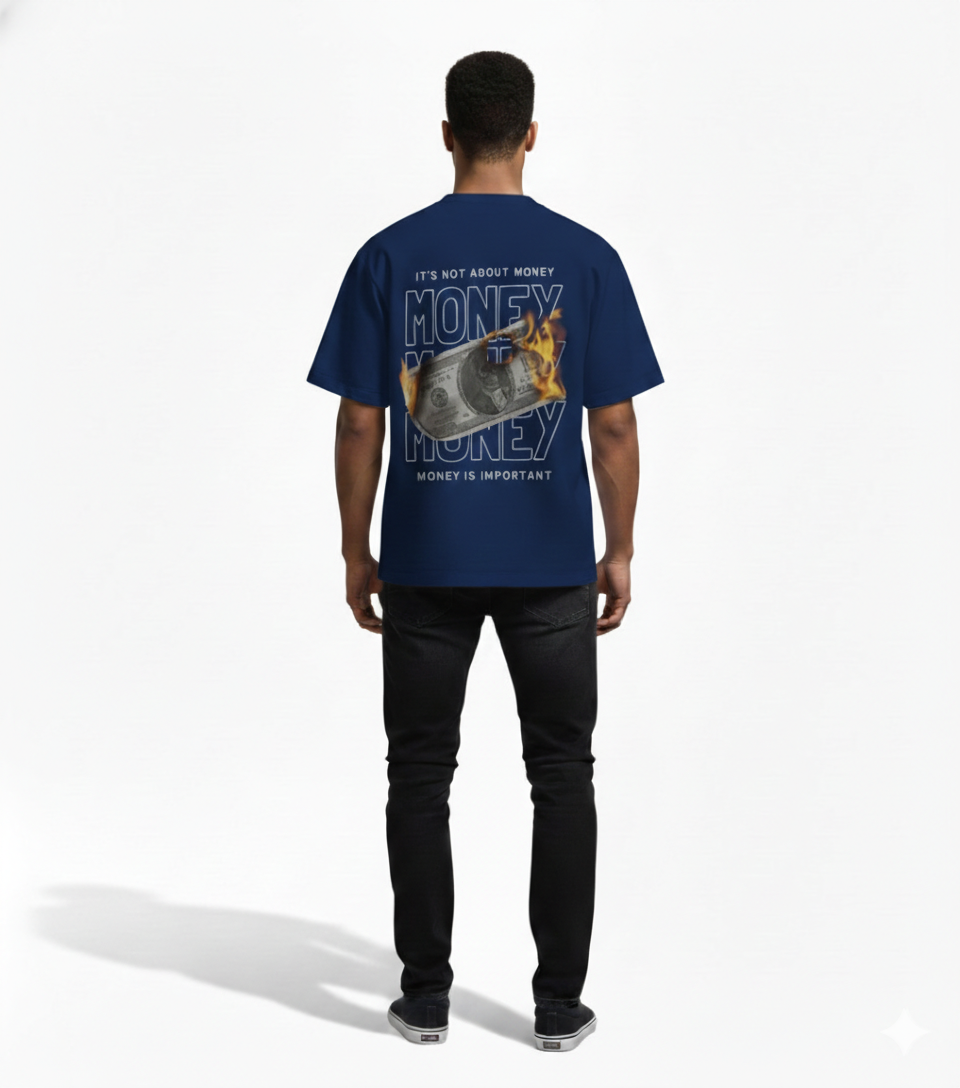 Make a powerful streetwear statement with this Royal Blue Oversized T-Shirt crafted from premium PC Fabric, featuring a bold money-inspired graphic print on the back. Designed for those who think beyond trends, this tee blends attitude, comfort, and modern urban style.