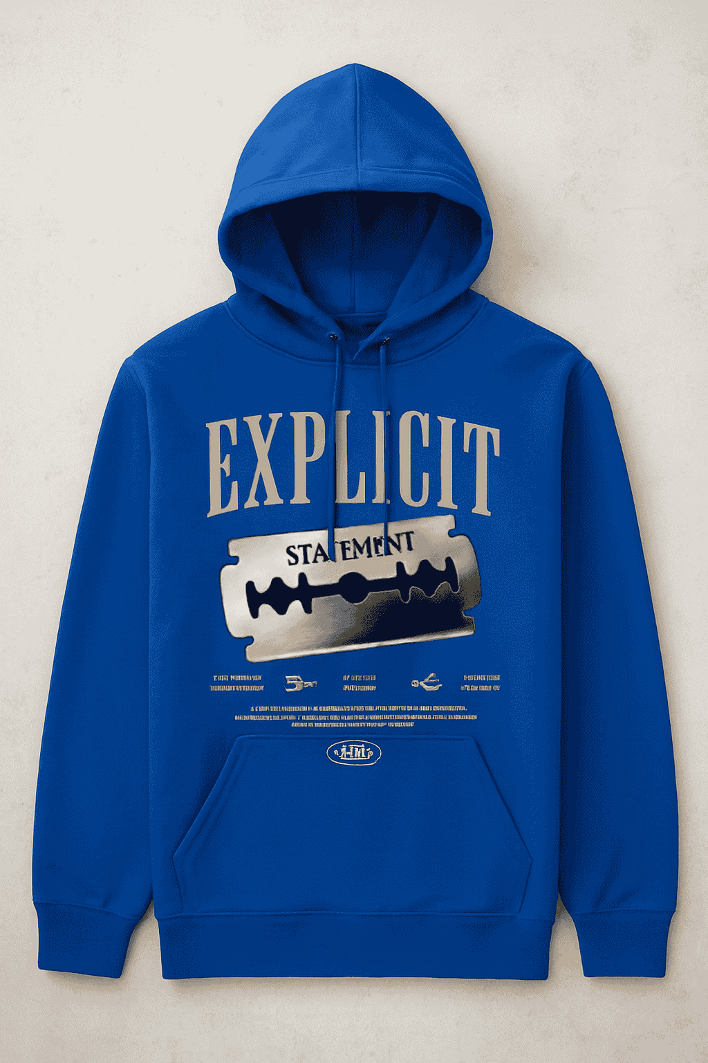 Make your style impossible to ignore with the Explicit Statement Hoodie. Featuring bold typography and a razor blade graphic, this hoodie is designed for those who embrace edge, attitude, and individuality.